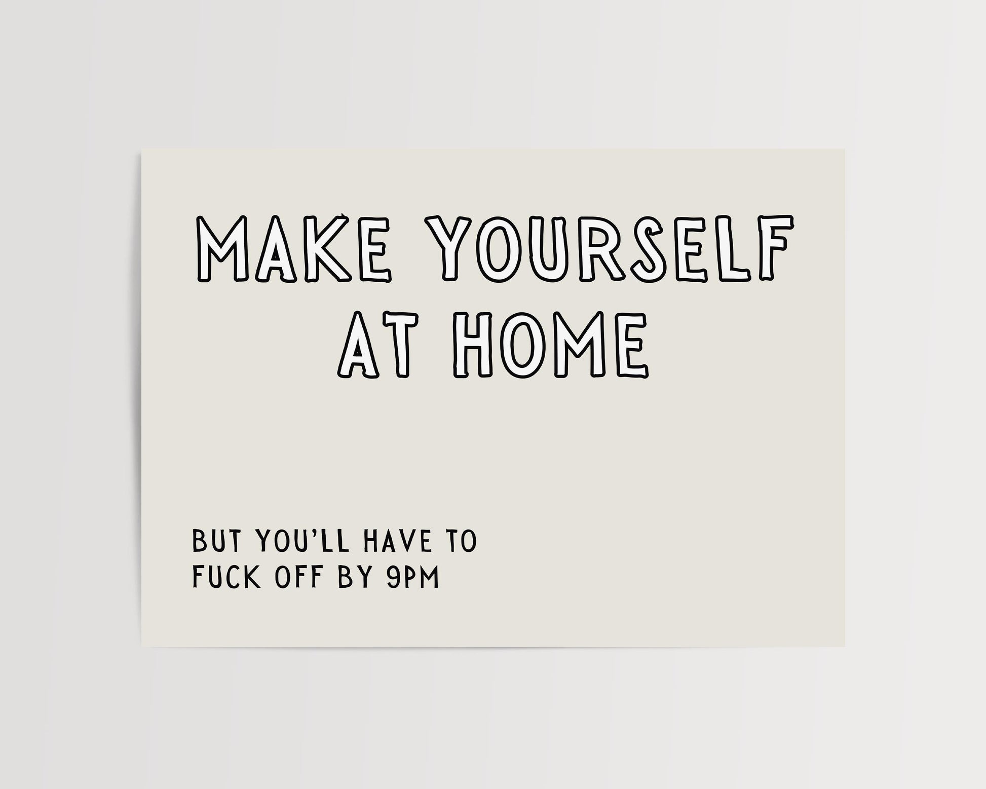 Make yourself at home, but you'll have to fuck off by 9pm. | Landscape UNFRAMED PRINT