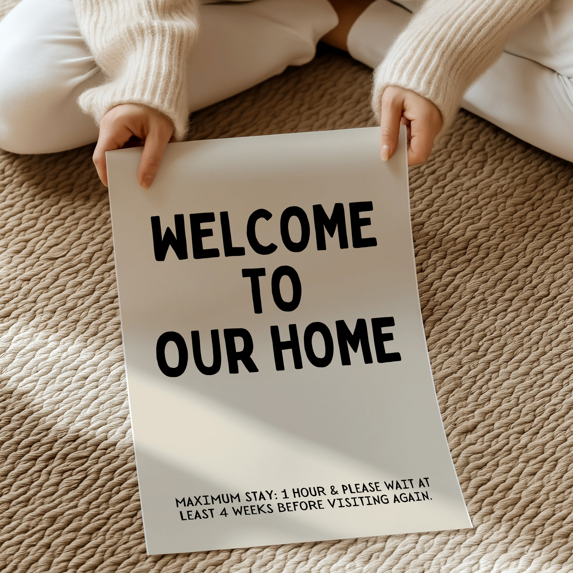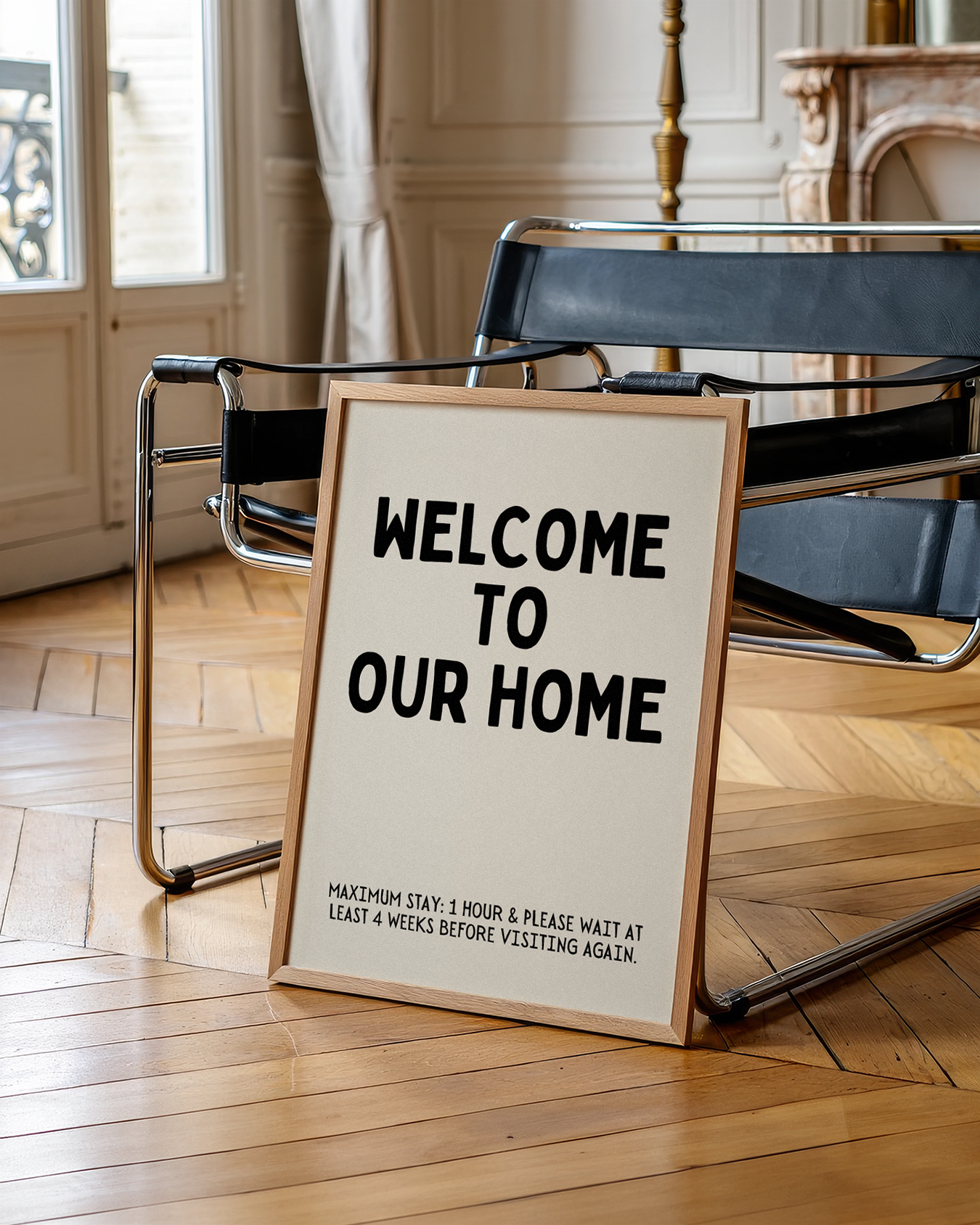 Welcome to our Home. Maximum stay: 1 hour & Please wait at least 4 weeks before visiting again. | UNFRAMED PRINT
