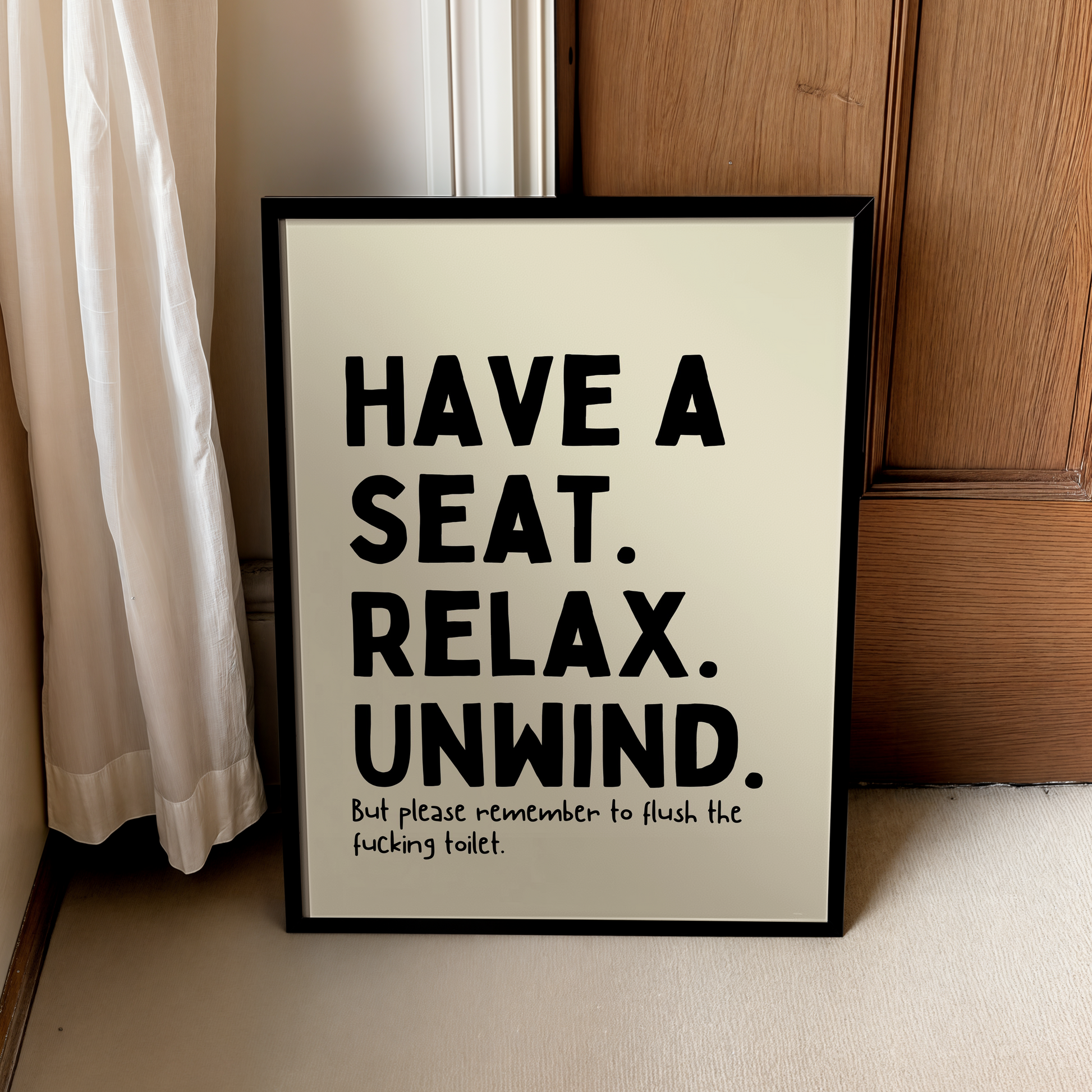 Have a seat. Relax. Unwind. But please remember to flush the fucking toilet. | UNFRAMED PRINT